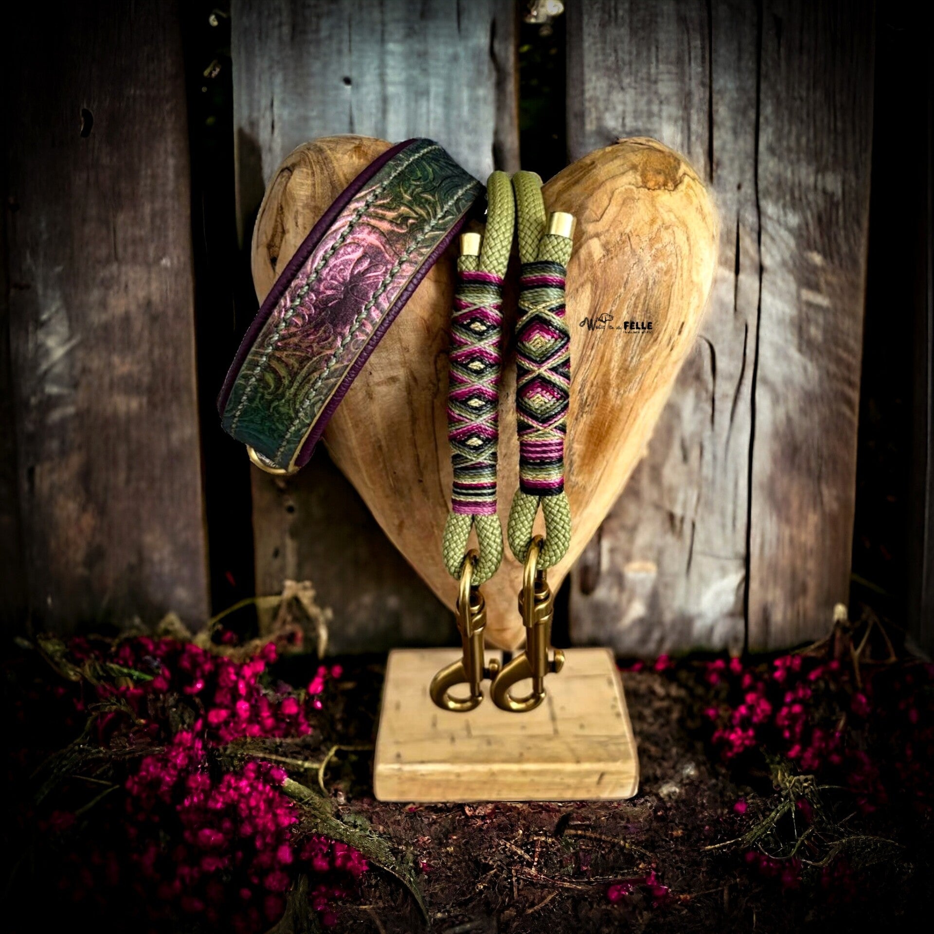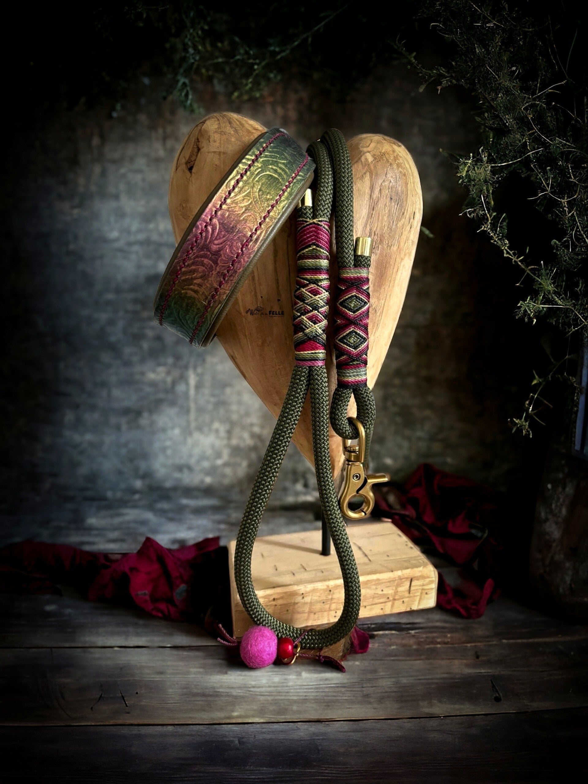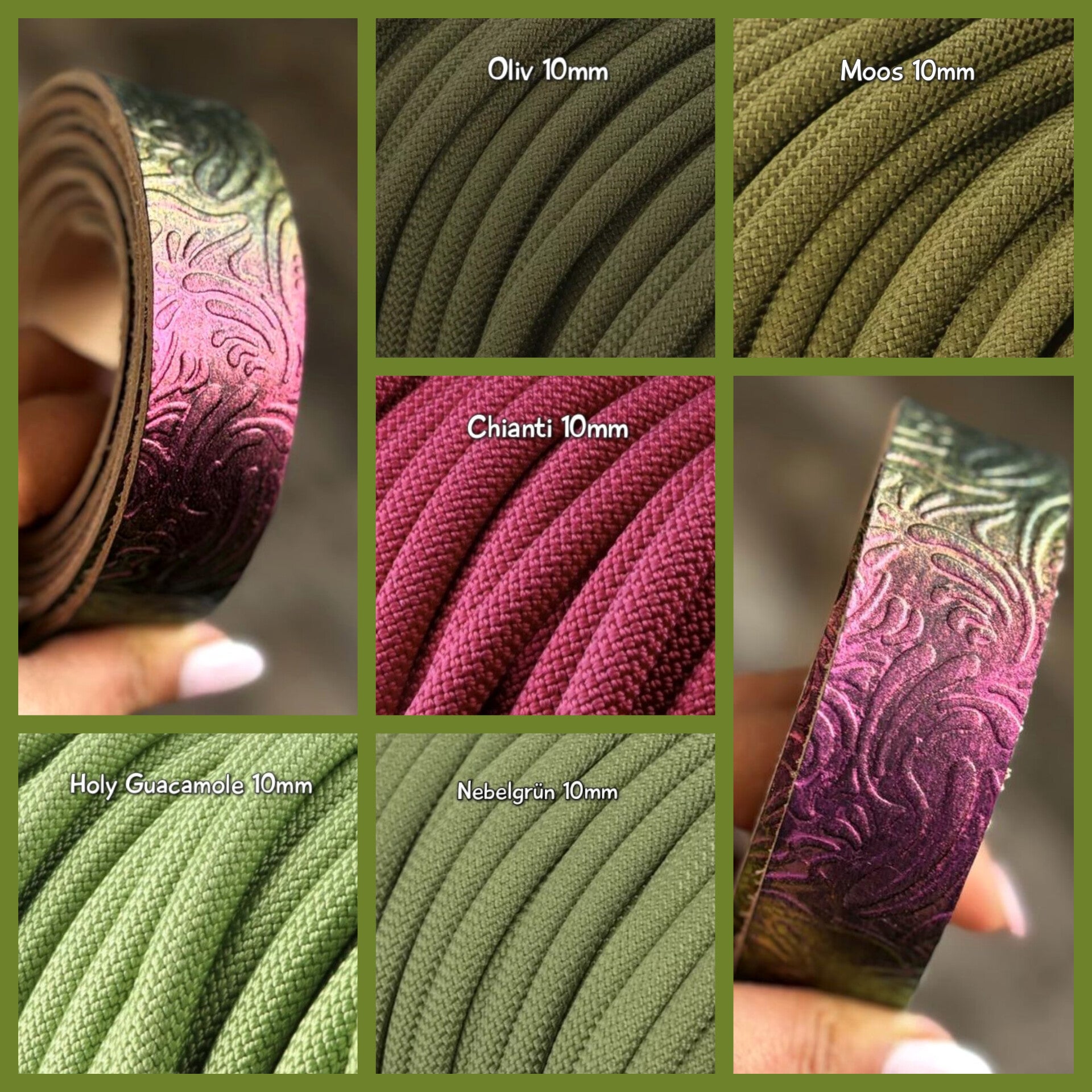 Dazupassende Leine aus verschiedenen Seilen gewählt werden, auf jeden Fall Bäääähmtakelung in Chianti, Bordeaux, ein Hauch Schwarz, Moos, Oliv, Dunkelgrün, Orchidee, Beere und Gold, also alle Schimmerfarben abgedeckt