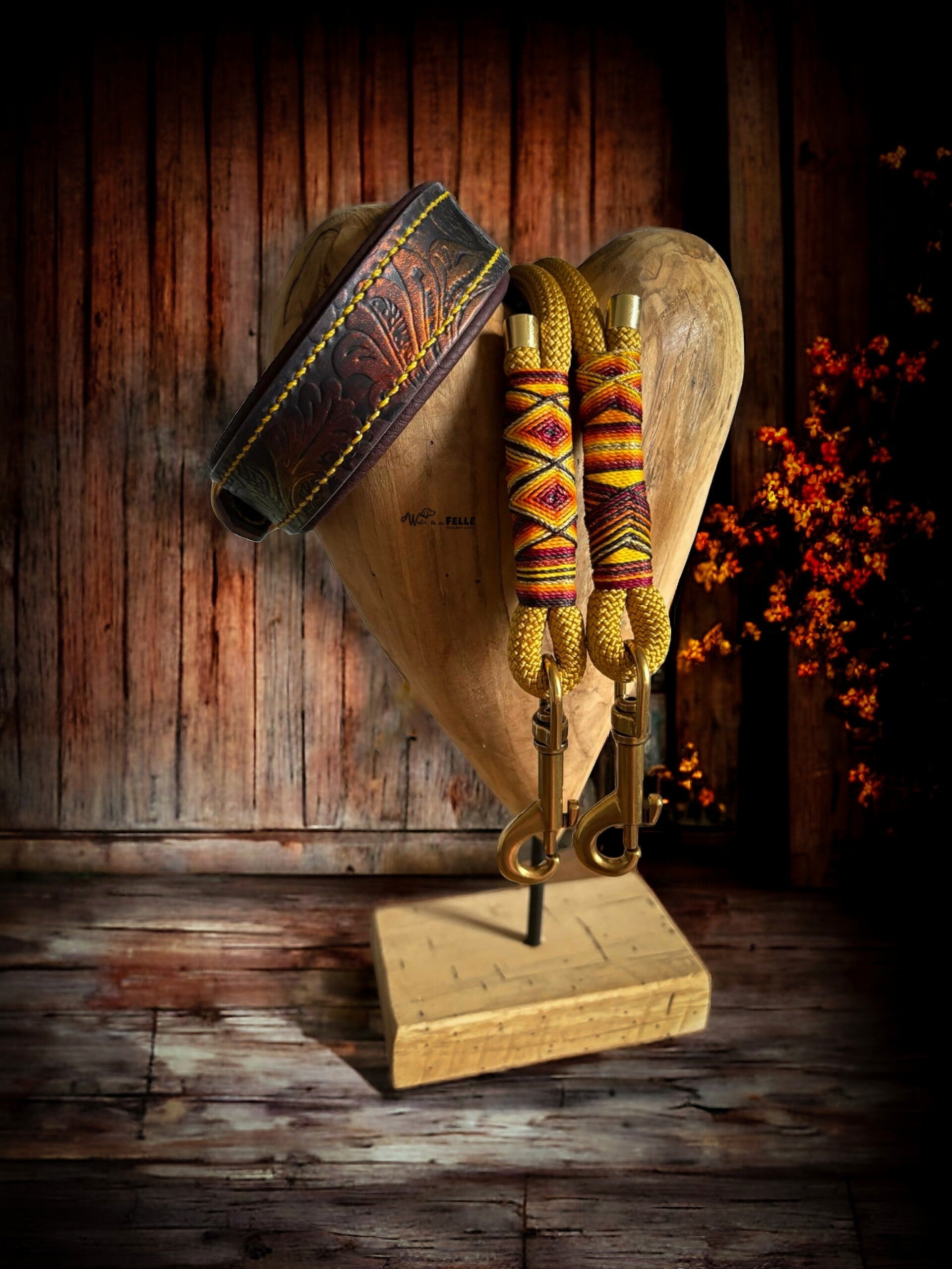 Dazupassende Leine aus verschiedenen Seilen gewählt werden, auf jeden Fall Bäääähmtakelung in Espresso, Kupfer, Gold, Gelbtöne im Farbverlauf, Orange, Eot und Bordeaux. also alle Schimmerfarben abgedeckt
