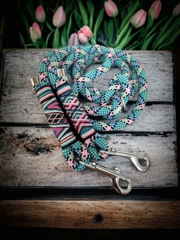 Dazupassende Leine aus unserem Seil "Chayenne" und Bäääähmtakelung in Schwarz, Petrol, Türkis, Aqua, Minze, Orchidee und zartes Rosa.