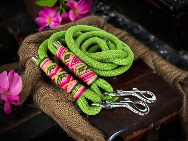 Leine 2m 2fach verstellbar aus dem Seil "Blattgrün" sowie Bääääääähm passend zum Halsi in Pfirsich, Magenta, Pink, Rosa, Dunkelgrün, Blattgrün und Hellgrün