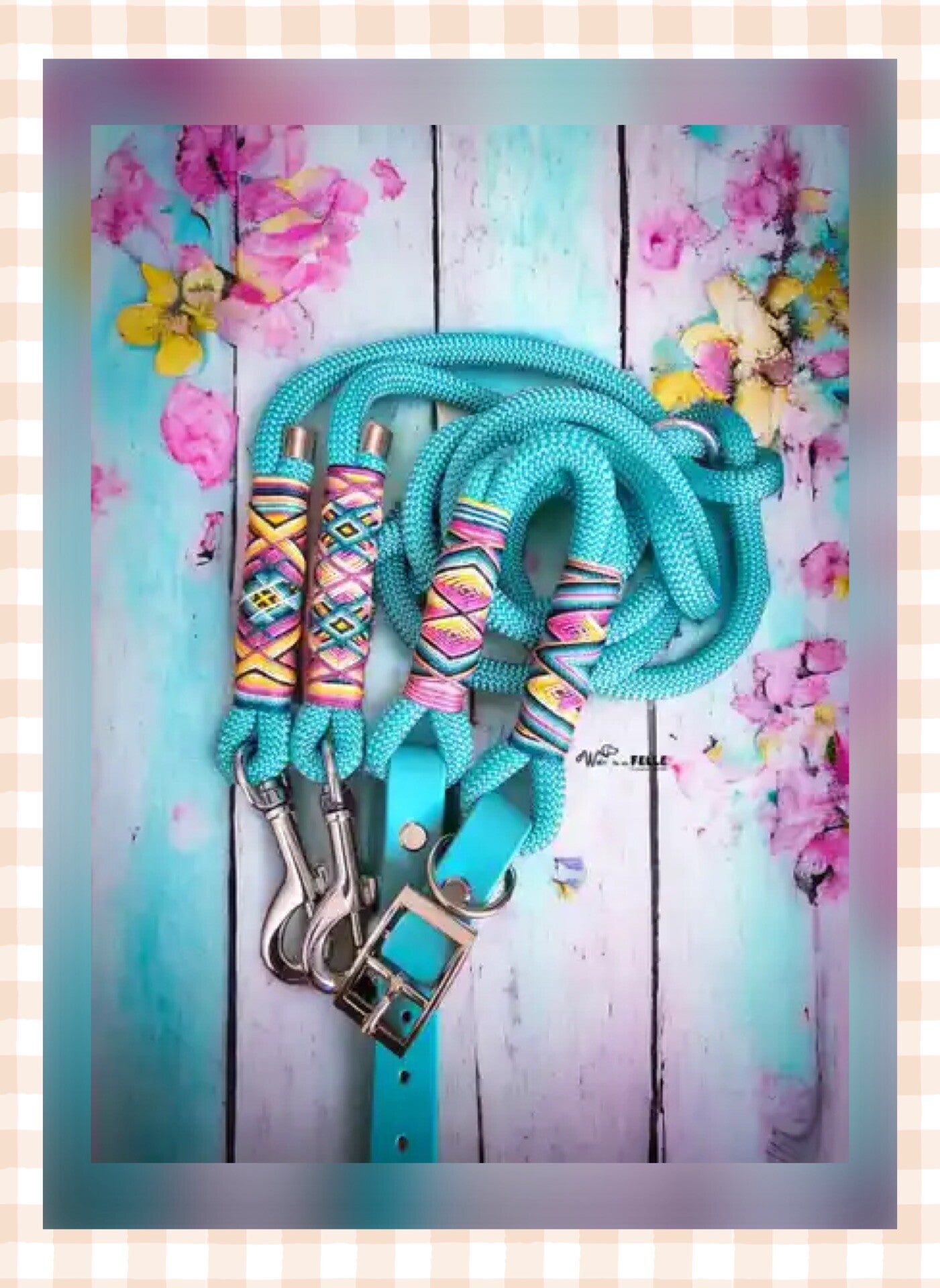 HB und Leine aus unserem Seil Türkis, Biothane "Dusty Türkis" wenn es verstellbar sein soll mit einzigartiger wutziger Bääääähmtakelung Schwarz als Kontrast, Petrol, Aqua, Mint, Minze, Malve, Fuchsia, Rosa, Lachs, Gelb, Hellgelb und Pastellgelb