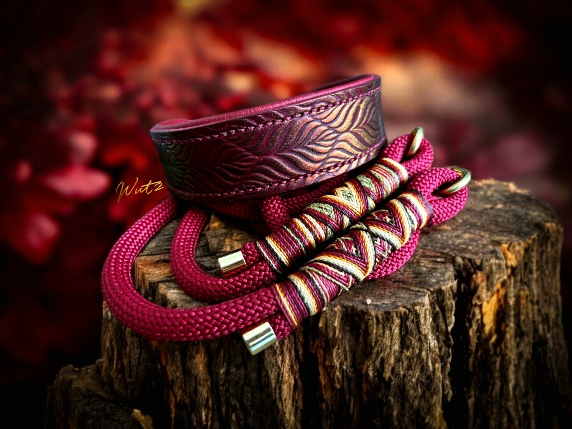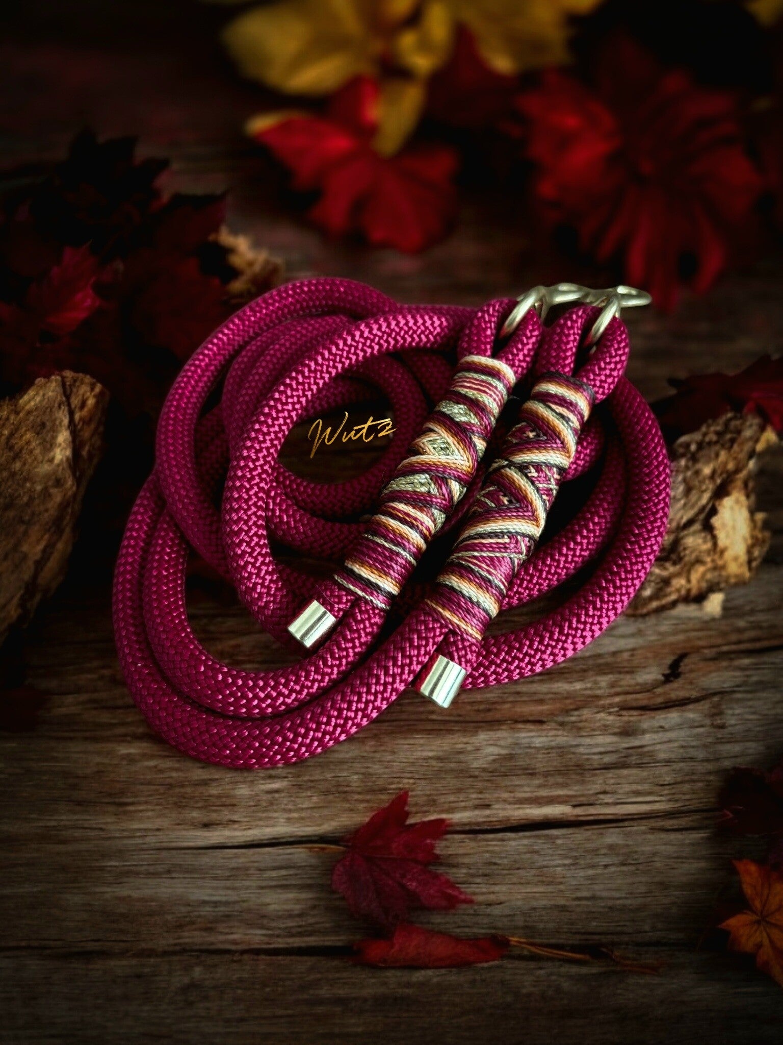 Leine aus unserem neuen Seil "Bordeaux" mit neuer Bäääähmtakelung in Dunkelbraun, Bordeaux, Rot, Mittelbraun, Cognac, Zimt, Hellorange