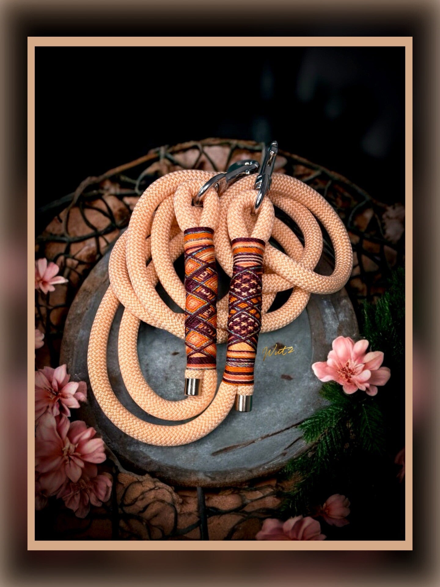 Leine Seil Frischer Lachs 10mm 2m 2fach verstellbar mit wutziger Bääääähmtakelung in Aubergine, Orange, Apricot, Lachs, Pfirsich, Pastellgelb & Multicolor Metallic.
