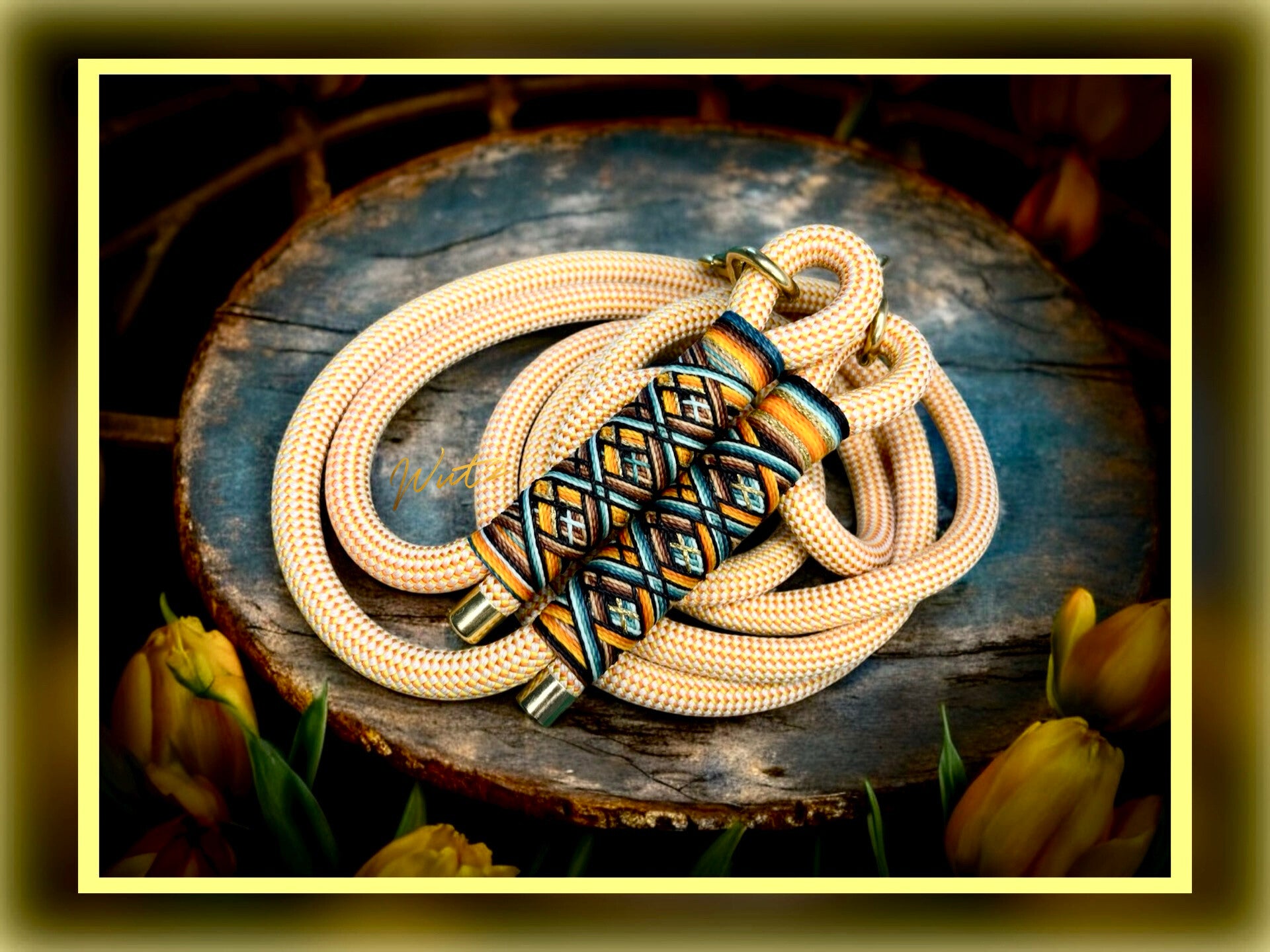 Leine Seil Ocker/Creme 10mm 2m 2fach verstellbar mit wutziger Bääääähmtakelung in Dunkelbraun, Gelbtöne, Brauntöne, Gold, Petrol, Aqua, Minze.